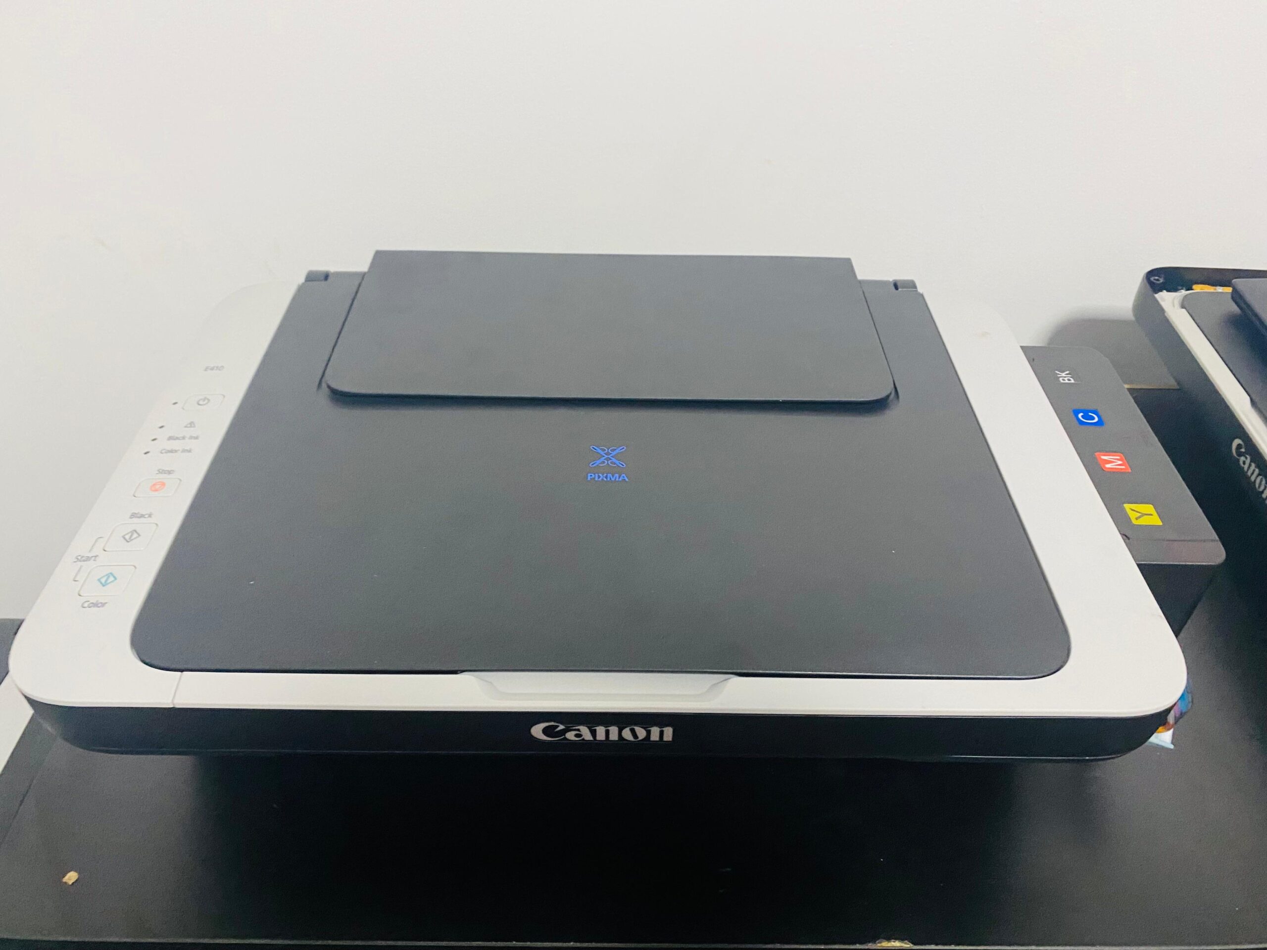 This is a brand-new Canon Pixma E410 Printer pre-installed with a Continuous Ink Supply System (CISS) Kit.