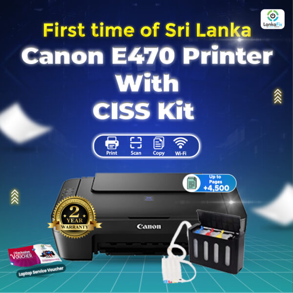 Introducing the Canon Pixma E470 Printer with built-in CISS Kit, available for the first time in Sri Lanka.